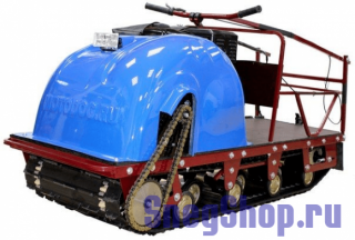 Всесезонная «мотособака» с прочной рамой, передним приводом и катковой подвеской для уверенной тяги и комфортной буксировки. Мотор 420 см³ (15 л.с.) обеспечивает стабильную тягу и скорость до ~35 км/ч на утрамбованной и рыхлой поверхности. Надёжная силовая конструкция выдерживает длительную эксплуатацию с грузом и сохраняет геометрию в сложном рельефе. Катковая схема и подпружинённые склизы смягчают удары и вибрации, повышая устойчивость на неровностях. Широкая лента из прочной резины с металлическими вставками повышает сцепление и износостойкость. Компактные габариты 180×59×84 см и масса 110 кг помогают уверенно проходить узкие и сложные участки. Надёжная передняя тяга улучшает разгон и проходимость при буксировке и движении по целине.