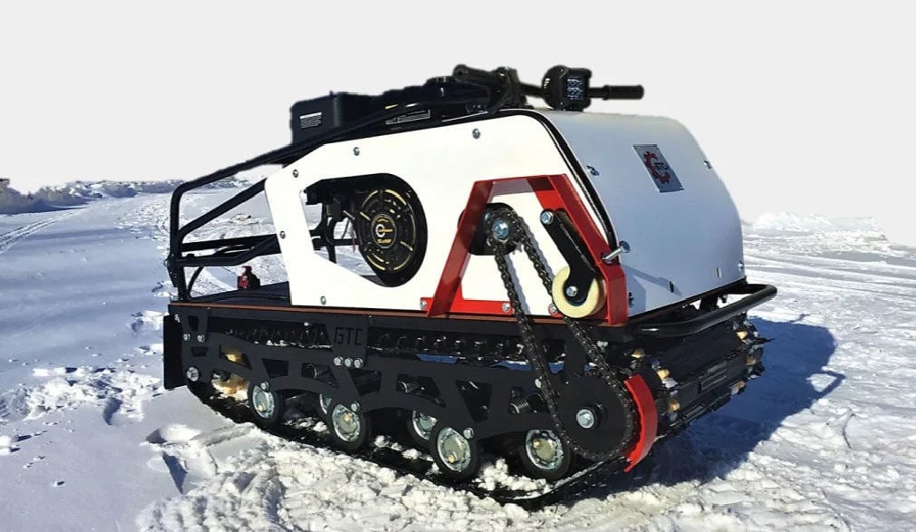 4-тактный двигатель мощностью 13 л.с. и объёмом 337 см³ обеспечивает разгон до ~45 км/ч и позволяет перевозить общий груз до 350 кг на платформе или в санях.