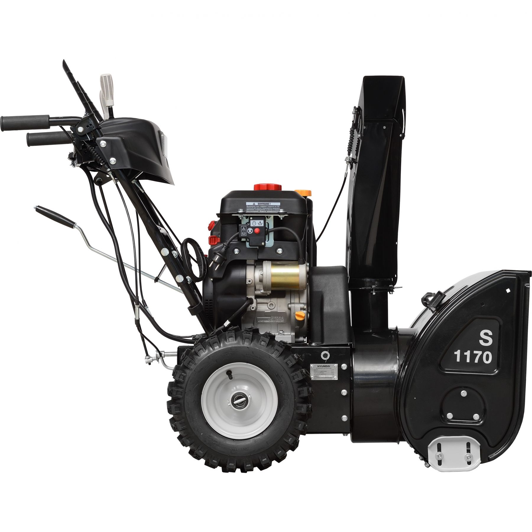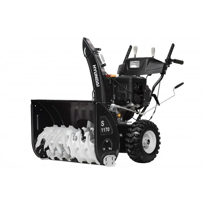 Мощное устройство для удаления снега и льда с больших территорий, обеспечивающее легкость в эксплуатации и маневренность. 11-сильный бензиновый двигатель с воздушным охлаждением, обеспечивающий запуск при температуре до -30°C. Электрозапуск и подогрев карбюратора обеспечивают удобство работы даже в суровых условиях. Галогеновая фара и подогрев ручек для комфортной работы при низких температурах. Агрессивные шнеки и двухсторонние направляющие лыжи для эффективной работы с любым типом снега. HYUNDAI S 1170 — самоходный снегоуборщик, идеально подходящий для работы в сложных зимних условиях. Оснащен мощным бензиновым двигателем на 11 л.с. и системой управления, позволяющей легко менять направление выброса снега. Для удобства эксплуатации предусмотрены такие функции, как подогрев карбюратора, электрозапуск, а также рычаги для регулировки высоты и направления выброса снега. Устройство оснащено агрессивными шнеками, что позволяет эффективно работать с плотным и свежим снегом. Снегоуборщик, руководство пользователя, базовый набор инструмента. 1 год гарантии на снегоуборщик. Сервис — в авторизованных центрах. Рекомендуется регулярное ТО для сохранения ресурса и эффективной работы снегоуборщика. Уточняйте технические детали и совместимость аксессуаров у специалиста.Самоходный снегоуборщик HYUNDAI S 1170