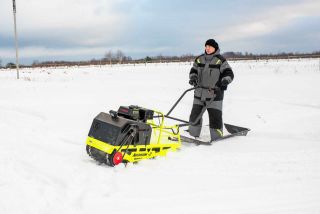 Мотобуксировщик выполнен с учётом потребностей охотников, рыболовов и фермеров. Он оснащён вместительным багажником для инструментов и других нужных вещей.