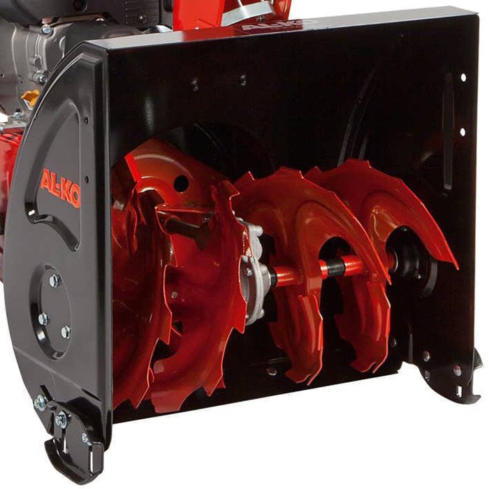 Идеально подходит для уборки снега на различных участках: пешеходных и проезжих дорогах, парковках, крышах зданий и в частных дворах. 4-тактный двигатель мощностью 7 л.с. с объемом 212 куб. см. Удобный рычаг для быстрого запуска двигателя в любых условиях. Быстрый запуск с напряжением до 220В, идеально для любой погоды. Фары для работы в темное время суток и при плохих погодных условиях. Удобство в мороз: подогрев ручек для комфортного управления. AL-KO Snowline 620 EII — мощный бензиновый снегоуборщик, предназначенный для работы в самых тяжелых зимних условиях. С двигателем мощностью 7 л.с. и специальным шнеком из стали, он легко справляется с любой толщиной снега. Электростартер и ручной запуск позволяют начать работу в любую погоду. Модель оснащена подогревом ручек, что гарантирует комфорт в сильные морозы. Колеса с агрессивным протектором и металлическая рама обеспечивают отличную проходимость и долговечность. Снегоуборщик также оснащен регулируемым дефлектором, позволяющим направлять выброс снега до 180 градусов. Шнек с высокой прочностью и пятью передачами вперёд и двумя назад позволяют выбрать оптимальную скорость и силу уборки. Снегоуборщик, руководство пользователя, гарантийный талон, базовый набор инструментов (по спецификации производителя). Продлённая гарантия до 2 лет, сервис в авторизованных центрах. Рекомендуется обкатка, регулярный контроль натяжения шнеков и своевременное ТО для продления ресурса. Уточняйте технические детали и совместимость аксессуаров у специалиста.Бензиновый снегоуборщик AL-KO Snowline 620 EII