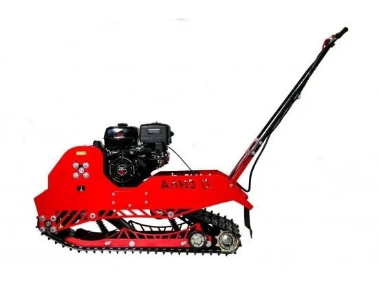 Двигатель мощностью 13 л.с. обеспечивает быструю буксировку груза до 40 кг и достижение скорости до 40 км/ч. Увеличенная гусеница шириной 500 мм и задняя подвеска с амортизаторами гарантируют комфортную работу на любой поверхности.