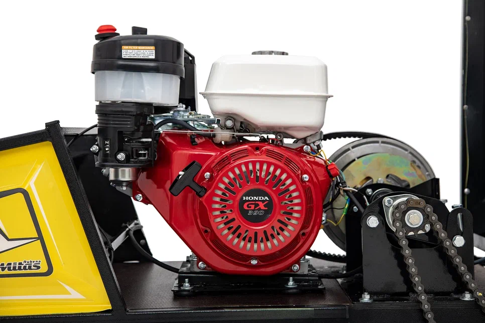 Мощный двигатель Honda GX 390 с верхним расположением клапанов обеспечивает высокий уровень сжатия и эффективное сгорание. Подвеска с амортизаторами и универсальная база делают модель удобной для использования с различными типами подвесок.