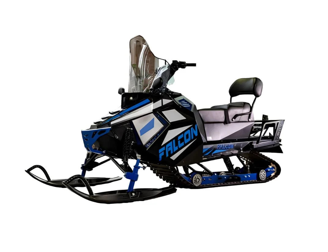Утилитарный снегоход с упором на управляемость и комфорт: для зимних маршрутов, хозяйственных задач и активного отдыха. Передняя рычажная подвеска с А-образным рычагом и регулировочной тягой — полный диапазон настроек схождения и развала. Двухамортизаторная склизовая задняя подвеска сочетает энергоёмкость и мягкость хода — в одиночку и с пассажиром. Линейка моторов Lifan/Loncin (~20 л.с. для версии Falcon 20) — стабильная тяга и экономичная эксплуатация. Двухуровневое сиденье со спинкой, ручки для пассажира, широкие рифлёные подножки, высокое ветровое стекло. Цифровая панель, подогревы ручек и курка газа, зеркала — для уверенных дальних поездок в мороз. Гидравлический тормоз, реверс и электростартер входят в базовую комплектацию. БУРЛАК Falcon 20 — утилитарный снегоход, созданный для стабильного движения по целине и укатанному снегу с упором на простоту управления и высокий уровень комфорта. Конструкция ориентирована на повседневные зимние задачи и длинные маршруты. Передняя подвеска с полным набором регулировок позволяет точно настроить геометрию лыж под стиль езды и нагрузку, а гидроамортизатор чутко отрабатывает неровности. Склизовая задняя подвеска с двумя амортизаторами добавляет энергоёмкость на ходовых «кочках» и сохраняет плавность. Вариаторная трансмиссия обеспечивает ровный разгон без рывков и помогает удерживать мотор в рабочем диапазоне. Для ежедневного удобства предусмотрены электростартер и реверс, а цифровая приборная панель делает контроль параметров наглядным. Туринговые элементы — двухуровневое сиденье со спинкой, широкие подножки, высокое ветровое стекло, обогревы органов управления — поддерживают комфорт пилота и пассажира в холодную погоду и при длительных переездах. Снегоход, руководство пользователя, гарантийный талон, базовый набор инструмента (по спецификации производителя). Срок и порядок гарантийного обслуживания определяются документацией на изделие и регламентом производителя. Обкатка по регламенту, регулярная проверка натяжения гусеницы и своевременное ТО продлят ресурс узлов и агрегатов. Поможем с техническими деталями и совместимостью аксессуаров.Снегоход БУРЛАК Falcon 20