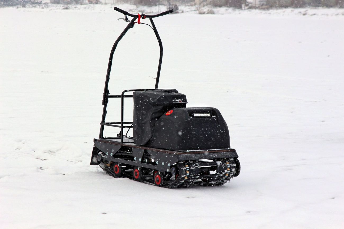 Конструкция мотобуксировщика включает надежную раму, улучшенную подвеску и возможность дополнительной установки склиз и пневмоколес в зависимости от сезона.