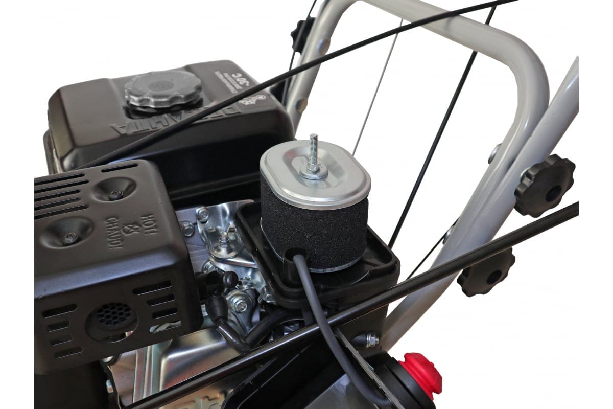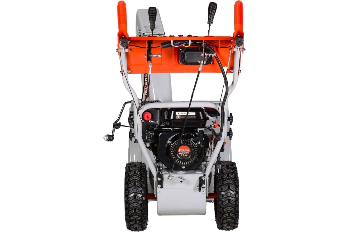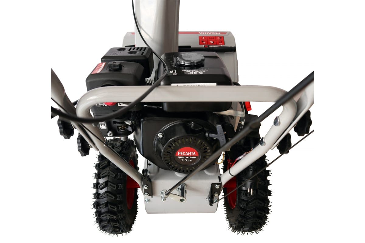Сердце машины — бензиновый двигатель 196 см³ (7 л.с.) с воздушным охлаждением. Быстрый холодный старт поддерживается электростартером, а хромированная поршневая и зимний воздушный фильтр помогают сохранить ресурс при низких температурах.