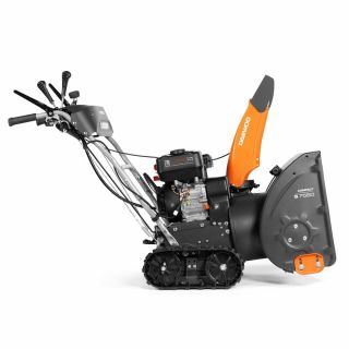 Надёжная гусеничная машина для быстрой уборки снега на дворе, подъездной дорожке и парковочной зоне. Бензиновый мотор 220 см³ с воздушным охлаждением и ручным стартером уверенно справляется со слежавшимся снегом. Шасси на гусеницах обеспечивает устойчивость и зацеп на укатанном снегу и льду. Металлические зубья эффективно режут наст и ледяную корку, ускоряя очистку. Поворотный желоб позволяет направлять поток в нужную сторону без разворота машины. 6 вперёд и 2 назад — легко подобрать темп под плотность снега и рельеф. Освещение рабочей зоны для безопасной уборки в сумерках и ранним утром.