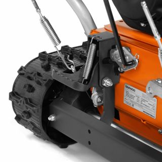 Модель сочетает самоходное шасси на гусеницах X-TRACK и зубчатый металлический шнек, что помогает справляться с плотным и слежавшимся снегом.
