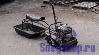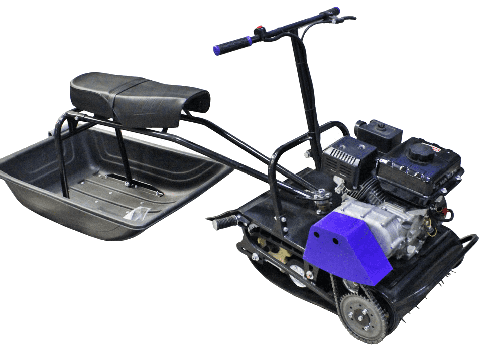 Модульная компоновка (гусеничный блок, двигатель, руль, сиденье) ускоряет разборку и переноску,