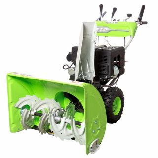 Особенностью этой модели является ручной стартер и возможность регулировки зазора ковша с помощью металлических башмаков. Благодаря высокой мощности и дальности выброса снега до 15 метров, снегоуборщик эффективен в самых различных условиях.