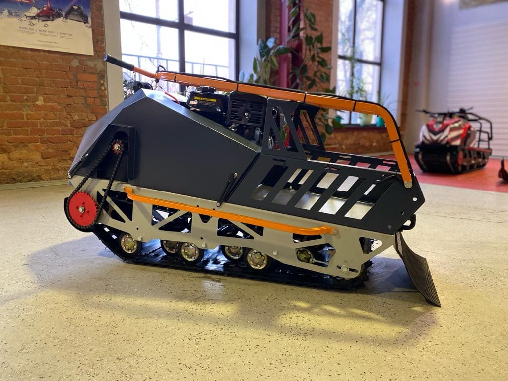 Мотобуксировщик для транспортировки водителя и грузов, буксировки техники и выполнения различных операций в условиях бездорожья и заснеженной местности. Бензиновый двигатель Lifan мощностью 15 л.с. с максимальным расходом топлива 1,7 л/ч. Морозоустойчивая рама из композитного пластика, устойчива до температур -53°C. Мощные гусеницы шириной 50 см для улучшенной проходимости в сложных условиях. Амортизационное основание для защиты от вибраций и повреждений.