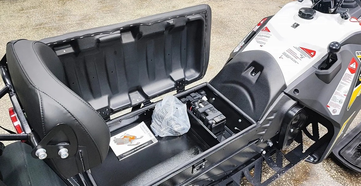 Двигатель 200 см³ развивает около 12 л.с., обеспечивая динамичный разгон и устойчивую тягу на укатанном снежном покрытии.