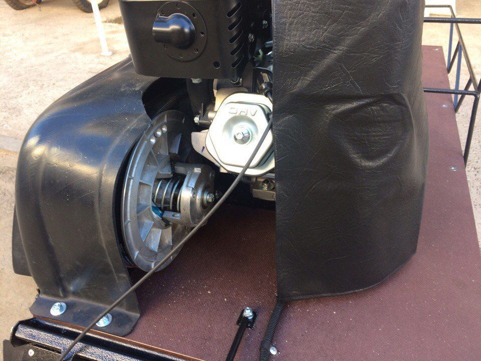 Мотобуксировщик имеет катковую подвеску, которая улучшает комфорт езды и стабилизирует движения при маневрировании по неровной местности. Подвеска также смягчает удары и вибрации, делая передвижение более удобным.