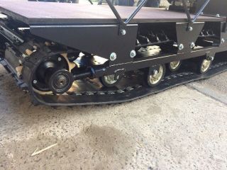 Он оснащен гусеницей шириной 650 мм с металлическими вставками, что улучшает сцепление с поверхностью и повышает износостойкость. Это делает мотобуксировщик идеально подходящим для работы на глубоком снегу и рыхлой почве.