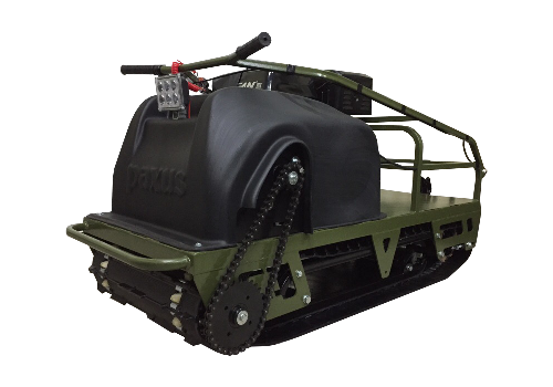 Надежная техника для круглогодичного использования, с высокой маневренностью и устойчивостью. Мощный 4-х тактный двигатель мощностью 9 л.с., который обеспечивает скорость до 45 км/ч. Устойчивая рама и прочные компоненты, обеспечивающие надежность при длительных нагрузках. Гусеница шириной 500 мм с металлическими вставками для повышения сцепления и износостойкости. Катковая подвеска для улучшения проходимости и устойчивости на неровных и мягких поверхностях. Легкость и компактные размеры обеспечивают маневренность на труднопроходимых участках.