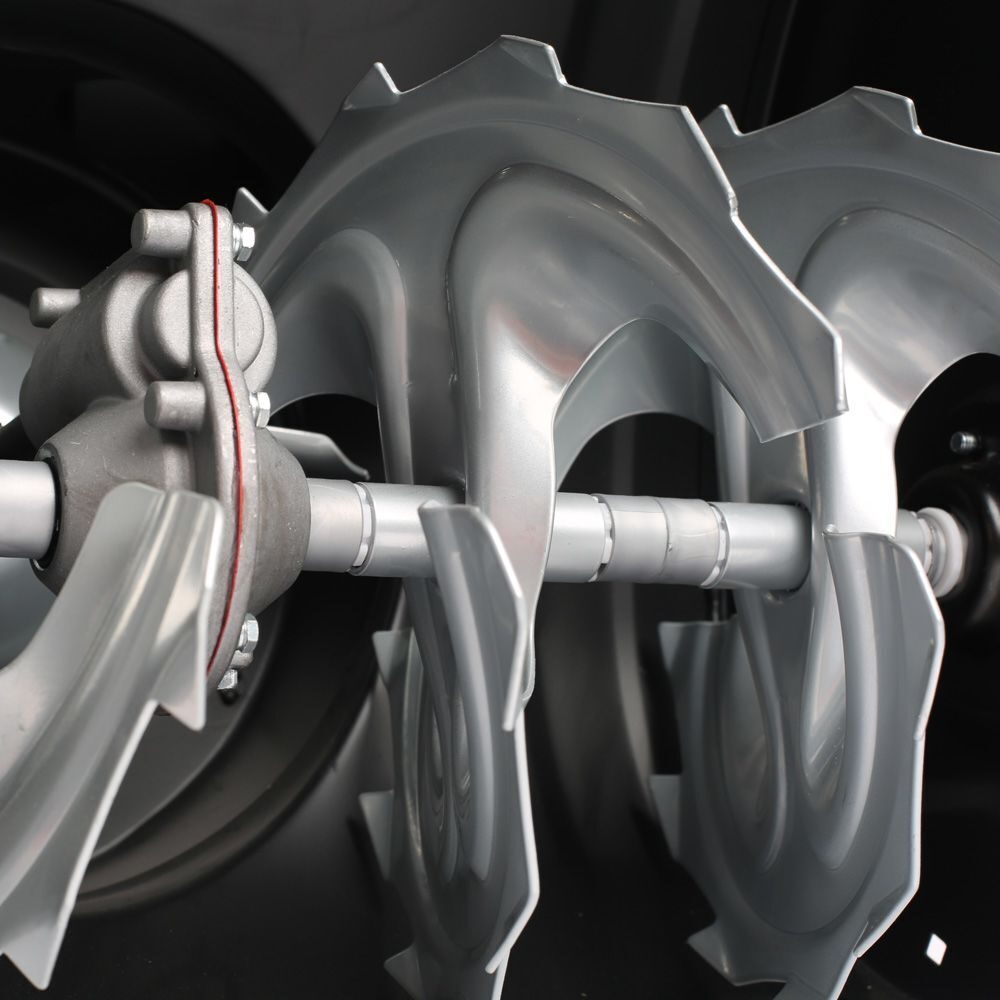 В модели предусмотрены 8 передач (6 вперед и 2 назад), что позволяет адаптировать устройство к различным условиям работы. Удобство эксплуатации обеспечивается подогревом ручек, а также легко доступной панелью управления.