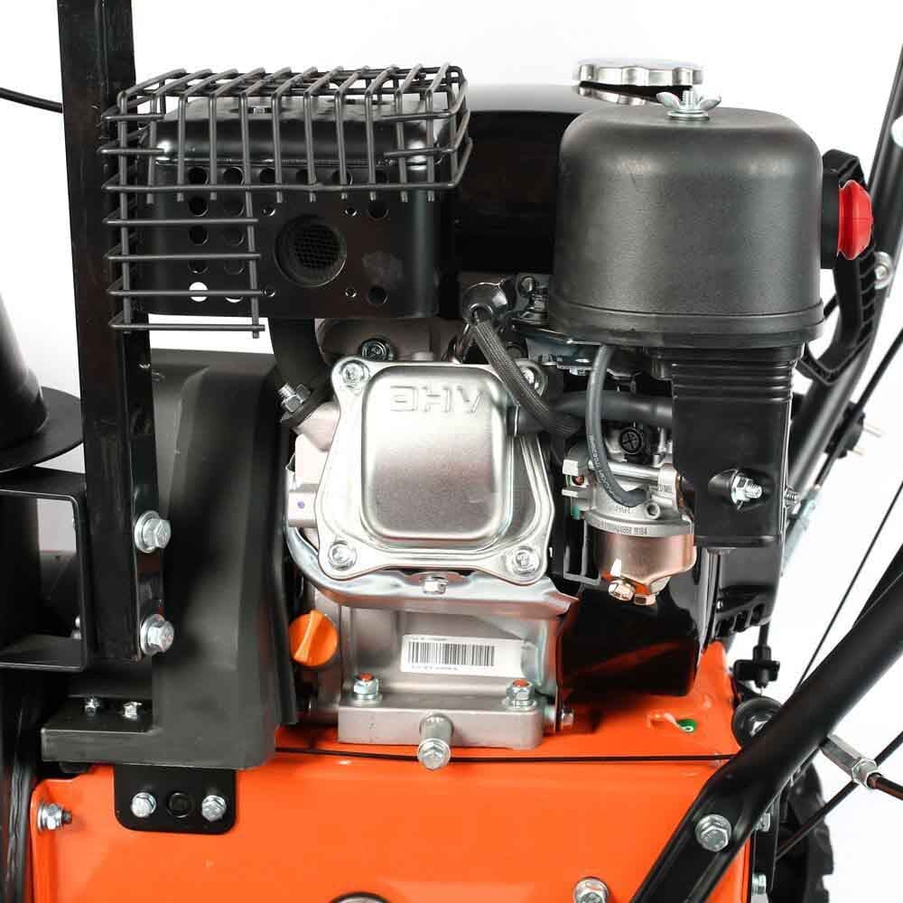 Бензиновый двигатель мощностью 7,8 л.с. с объемом 220 куб. см, обеспечивает надежную работу даже в сильные морозы.