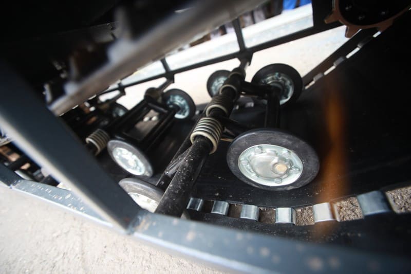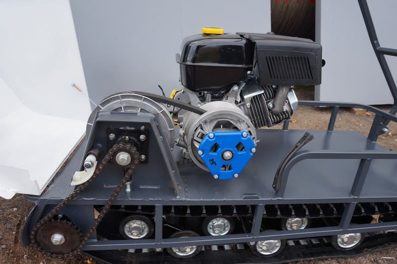 Цельная гусеница шириной 500 мм совместно с катковой подвеской добавляют проходимости как на пухляке, так и на льду или грунте.