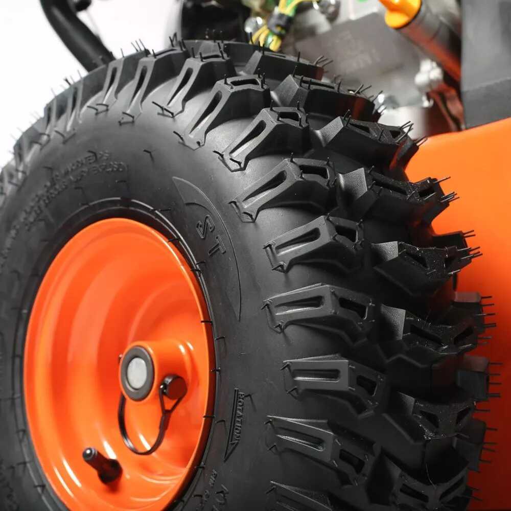 Дополнительное удобство обеспечивают колеса с гусеничным протектором и LED-фары для работы в темное время суток.