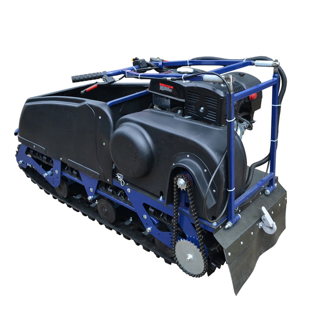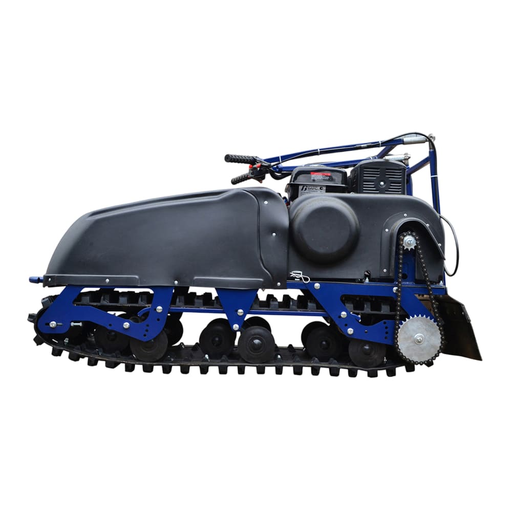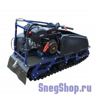 Утилитарная «мотособака» для рыхлого и глубокого снега, льда и разбитых зимних трасс: тяга, манёвренность и простота обслуживания. Надёжная силовая установка на 13 л.с. обеспечивает устойчивую тягу на целине и разгон до ~45 км/ч. Плавное изменение передаточного числа и ремни SOLID / MTR / RUBENA — для ресурса и предсказуемости в ходу. Широкая лента в паре с катковой подвеской уверенно держит мокрый снег, наст и обледенелые участки. Стальные пружины в подвеске и возможность быстрой смены склизовой на катковую без переделок. Руль у основания рамы, компактный блок органов на руле и развесовка для точной дозировки тяги. Пол и силовой бампер из ПНД не боятся влаги и наледи, защищают раму и облегчают погрузку. Комфортная работа ночью и в тумане: уверенная подсветка маршрута на узких тропах. Усиленный фаркоп с подпружиненной «собачкой» и чека аварийного отключения двигателя.