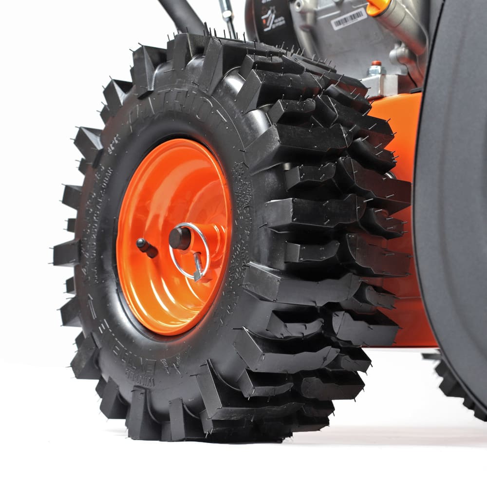 Мощный бензиновый двигатель 11 л.с. с объёмом 302 куб. см для быстрого и эффективного удаления снега и льда.