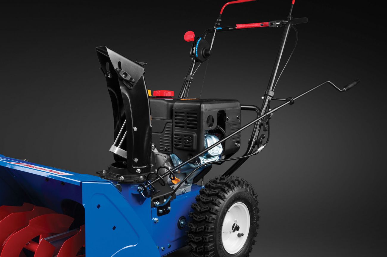 Бензиновый двигатель 182 см³ (около 6 л.с.) обеспечивает стабильную тягу при уборке плотного и слежавшегося снега.