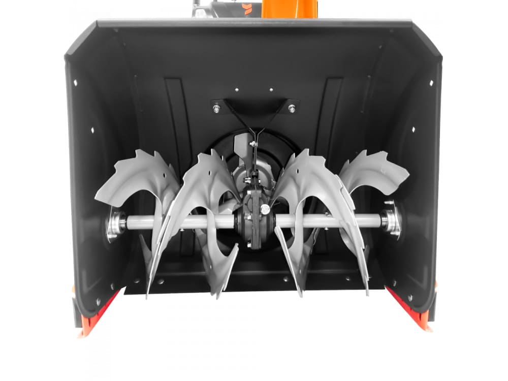 Ширина ковша составляет 61 см, высота забора — до 51 см. Металлический шнек и крыльчатка эффективно подают и выбрасывают снег на расстояние до ~11 м через регулируемый стальной желоб.
