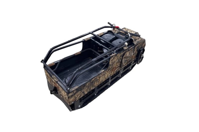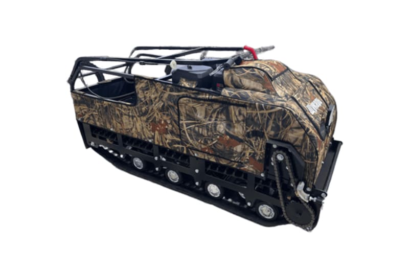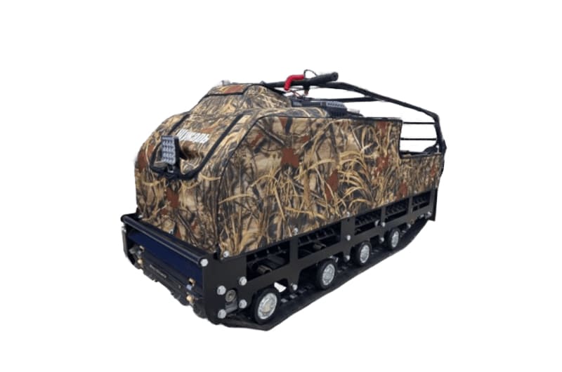 Он сочетает в себе функциональность мотобуксировщика и проходимость снегохода. Мощность двигателя 20 л.с. позволяет достигать максимальной скорости ~50 км/ч, а увеличенная гусеница шириной 600 мм улучшает зацеп и проходимость.