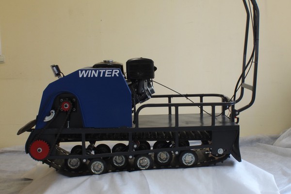 Мотобуксировщик оснащен 4-х тактным двигателем мощностью 15 л.с. с максимальной скоростью 45 км/ч.