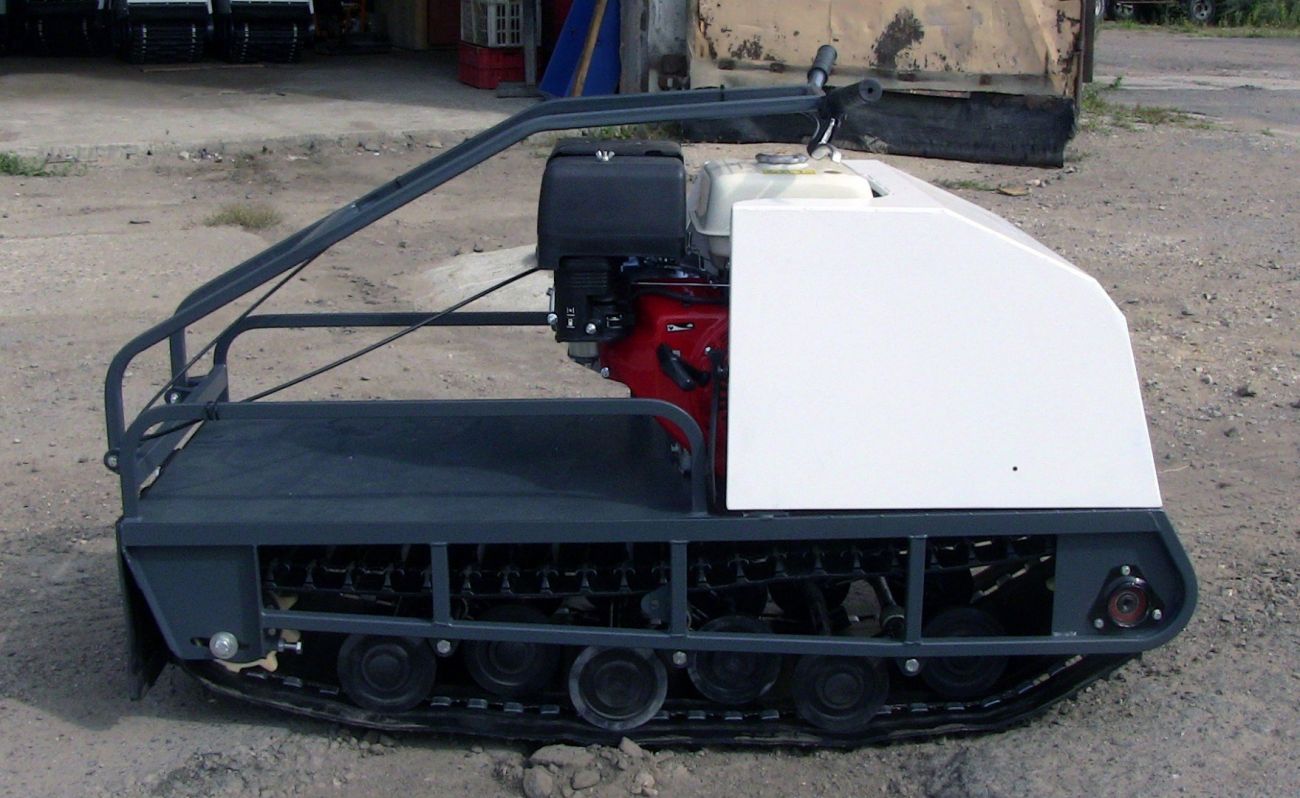 Мотобуксировщик оснащен вариатором для плавного ускорения и лучшей маневренности. Благодаря катковой подвеске он уверенно движется по неровной местности, а гусеница шириной 500 мм гарантирует отличную проходимость на льду и по территории без снега.