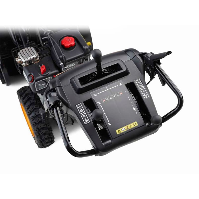 Производительная двухступенчатая машина для очистки свежего и слежавшегося снега на дорожках, подъездных путях и дворовых территориях. Четырёхтактный Briggs & Stratton 800 Snow Series (163 см³) обеспечивает стабильную тягу и уверенный пуск в мороз. Шесть передач вперёд и одна назад — легко подобрать темп под плотность и высоту снежного покрова. Вариатор на панели управления позволяет тонко настраивать скорость перемещения в процессе работы. Поворотный желоб управляется рычагом — направляйте струю снега вправо/влево и выбирайте дальность выброса. Шины с агрессивным протектором уверенно держатся на укатанном снегу и обледеневших участках. Пластиковые полозья регулируют высоту ковша и предохраняют декоративные покрытия от царапин. Шнек измельчает снег, крыльчатка выбрасывает его мощной струёй через раструб — эффективно и быстро.