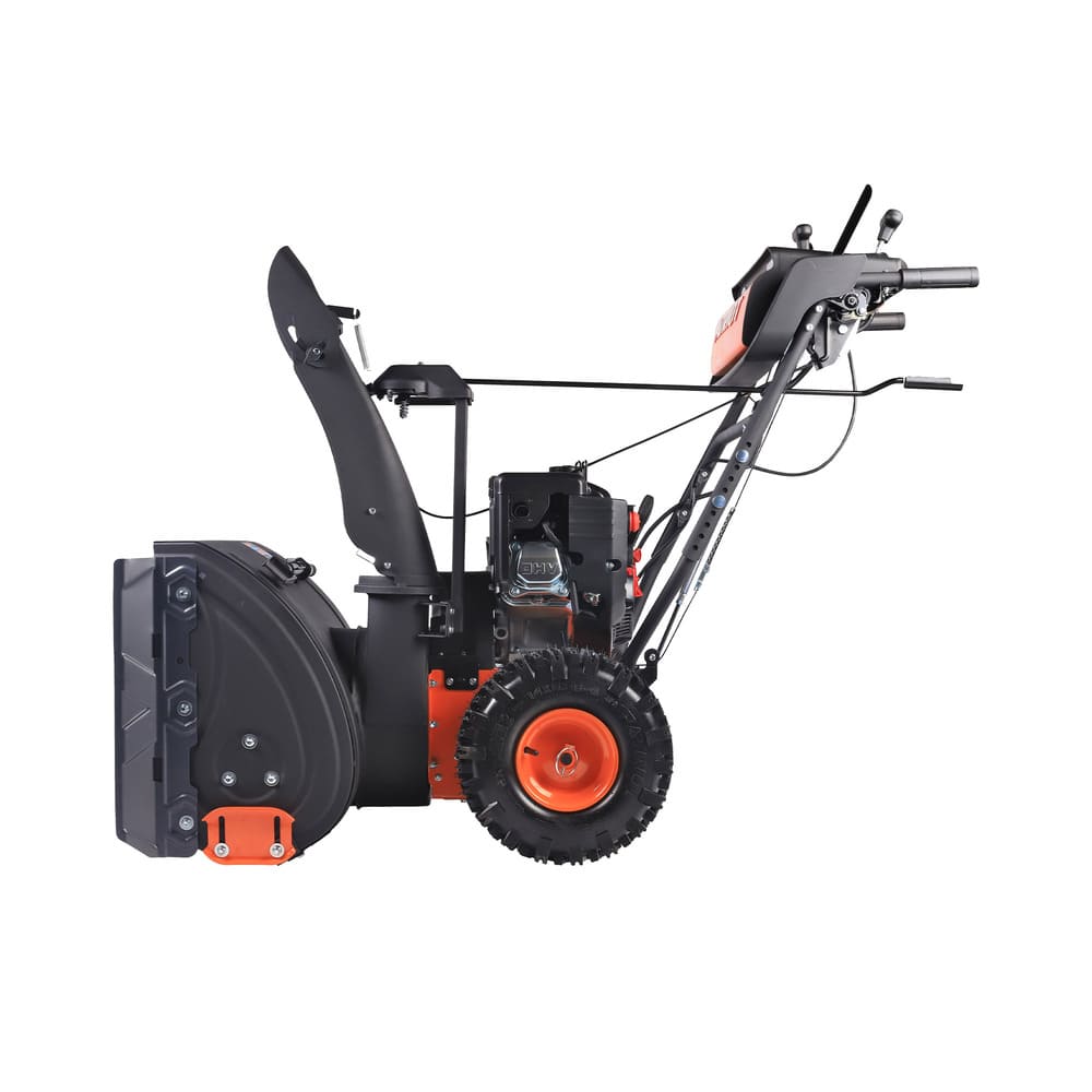 Бензиновый мотор 7 л.с. (212 см³) рассчитан на работу в низких температурах и стабильно тянет на плотном и мокром снегу.