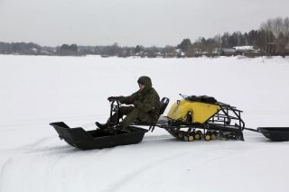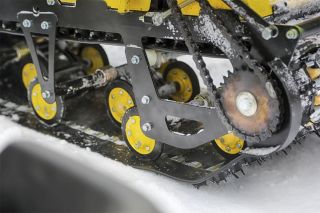 благодаря чему техника уверенно идёт по льду и способна двигаться по участкам без снежного покрова.