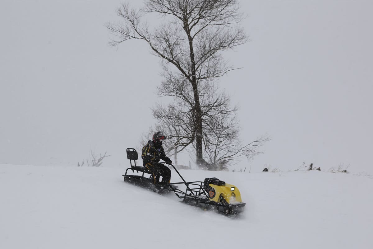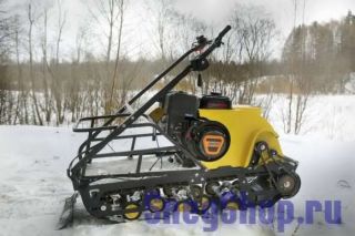 Всесезонный помощник для глубокого снега, перемётов и мягкого грунта: прост в эксплуатации и обслуживании. Надёжный двигатель 13 л.с. обеспечивает уверенную тягу и скорость до ~40 км/ч для перевозки груза и буксировки саней. Универсальная рамная конструкция со съёмным багажником выдерживает нагрузку и упрощает обслуживание. Плавная передача тяги и демпфирование двигателя помогают сохранять курсовую устойчивость на целине. Цельная резиновая гусеница в паре с катковой подвеской уверенно держит лёд и участки без снега. Длина 123 см, ширина 54 см и масса 95 кг помогают проходить узкие и сложные участки. Откидной стальной капот, защита цепи и LED-фара с регулировкой угла наклона для удобства в работе.