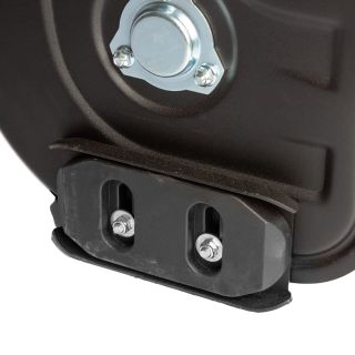 Двухсторонние опорные башмаки увеличивают срок службы кромок ковша и облегчают настройку по покрытию, а крупные колёса 16×4.8-8 повышают проходимость.