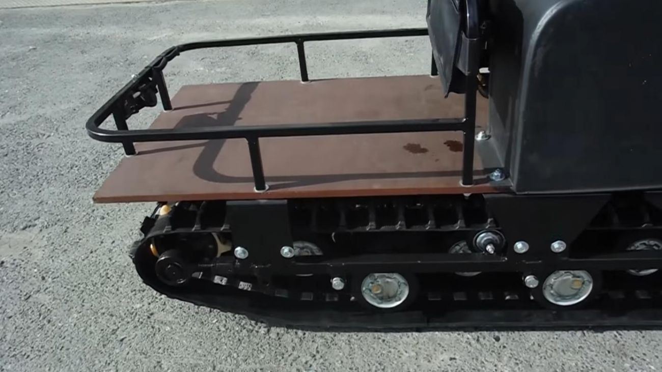 Конструкция включает катковую подвеску, которая гарантирует хорошее сцепление с поверхностью и плавное движение на различных покрытиях.