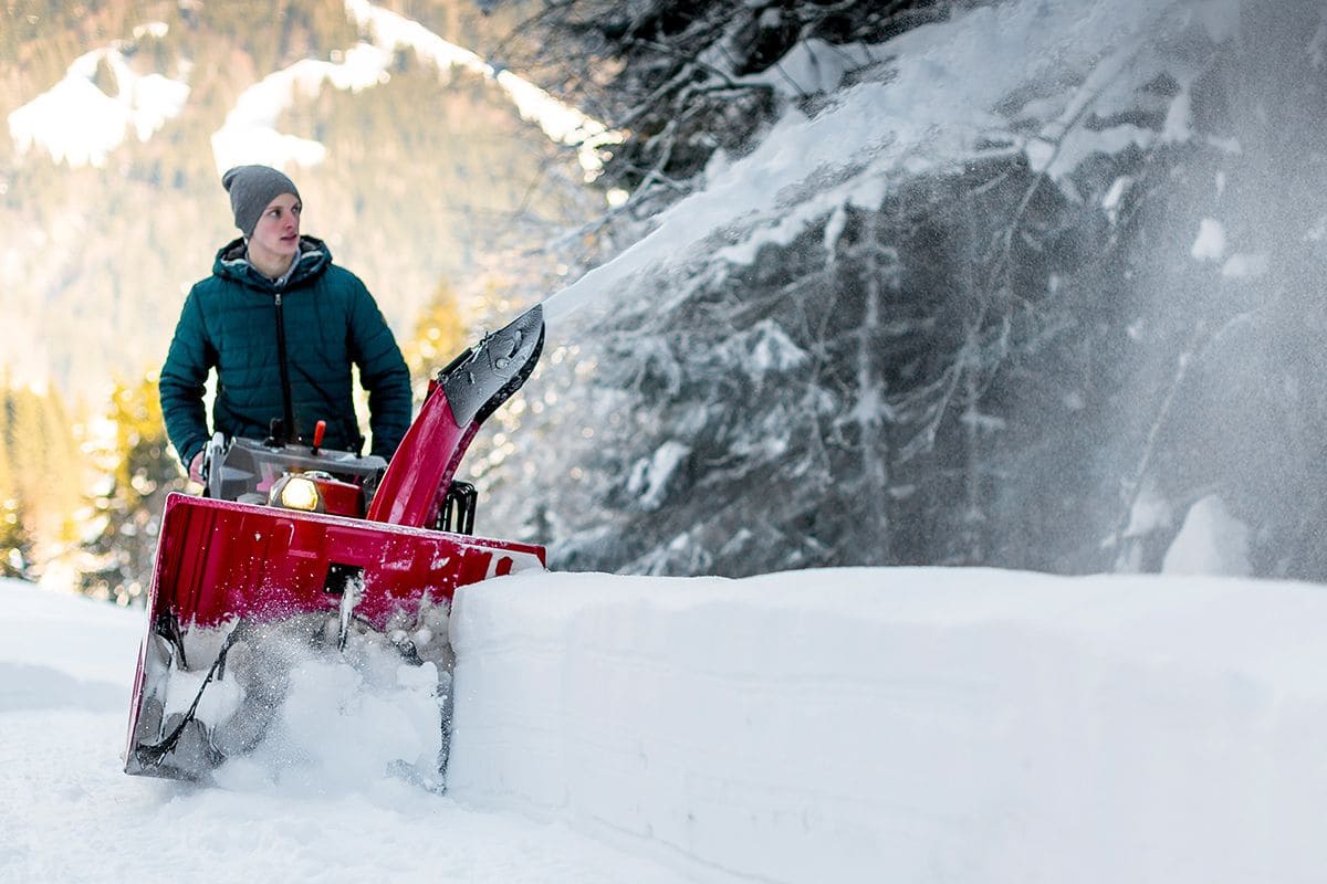 Двухступенчатая система быстро разбивает и перемещает снег, а дальность выброса достигает до 16 м, что уменьшает количество проходов.