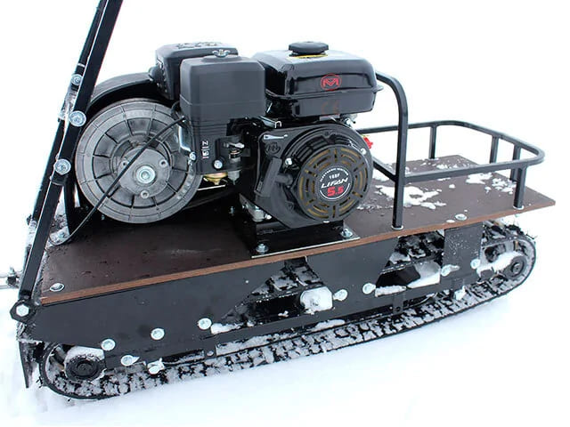 Всесезонная техника для снега, льда, песка и грунта: компактный размер, уверенная тяга и высокая проходимость. Надёжный 4-тактный двигатель объёмом 389 см³ (13 л.с.) обеспечивает стабильную тягу и запас по ресурсу. Плавная передача мощности и уверенное ускорение на любом покрытии — от настов до рыхлого снега. Полотно шириной 500 мм с выраженным зацепом уменьшает пробуксовку и повышает проходимость на льду и целине. Катковая, склизовая, подпружиненные склизы и опция пневмоколёс — настройка под сезон и рельеф. Упрощённая катковая подвеска не забивается снегом; компактные габариты помогают на узких тропах. Регулируемая по высоте рукоятка подстраивается под рост водителя для уверенного контроля. Обрезиненные катки с сальниками и ведомая звезда самоочищаются от снега и льда. Разгон до ~40 км/ч и буксировка груза до ~250 кг в санях или на багажной площадке.