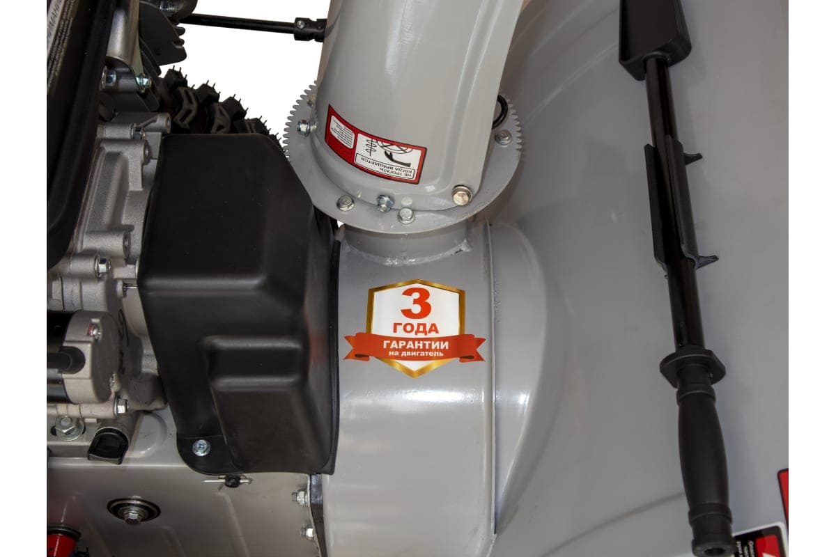 Мощная колесная машина для очистки дорожек и площадок: уверенно перемалывает плотный и влажный снег металлическим зубчатым шнеком. Бензиновый мотор 420 см³ (13 л.с.) с воздушным охлаждением обеспечивает стабильную тягу и быстрый холодный запуск. Электростартер от сети 220В и зимний воздушный фильтр помогают легко запустить технику в мороз. Металлический шнек активно измельчает слёженный и влажный снег для дальнего и направленного выброса. Коробка с 6 скоростями вперёд и 2 назад помогает подобрать режим под рельеф и толщину снега. Хромирование поршневой группы и срезные шплинты защищают узлы от перегрузок и продлевают срок службы. Яркая фара для работы в сумерках, подогрев ручек и регулируемый желоб по направлению и высоте выброса.