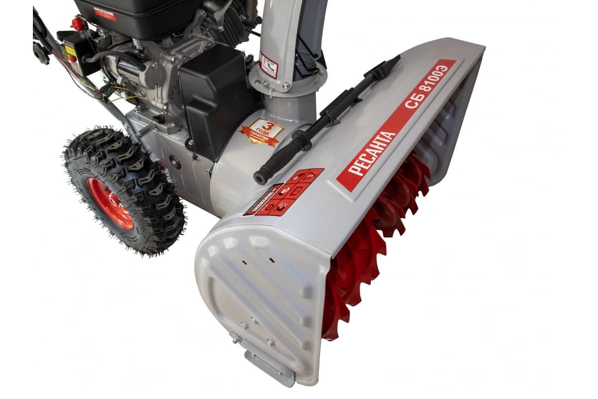 Снегоуборщик, руководство пользователя, набор срезных шплинтов, базовый инструмент (по спецификации производителя). Гарантийный срок — 1 год согласно условиям производителя. Рекомендуется регулярное ТО, контроль ремней и тросов, проверка натяжения, смазка подшипников и хранение в сухом помещении. Уточняйте технические детали, доступные аксессуары и совместимость навесного оборудования.Самоходный снегоуборщик Ресанта СБ 8100Э