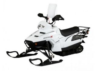 Компактная туристическая модель с неразборной конструкцией и акцентом на надёжность и простоту эксплуатации. 4-тактный одноцилиндровый GY6 (воздушное охлаждение) развивает 10,3 л.с.; расход около 5,5 л/100 км. Длинномерный вариатор с режимами вперёд/нейтраль/назад для уверенного маневрирования на снегу. Электростартер для повседневного пуска и ручной запуск как резерв — удобно при разряженной АКБ. Телескопическая вилка с двумя амортизаторами и пара пластиковых лыж шириной 135 мм каждая. Катковая подвеска и армированная резинотканевая гусеница шириной ~310 мм с высокими грунтозацепами. Подогрев ручек и курка газа, ветровое стекло и защита рук; «чека» аварийной остановки мотора.
