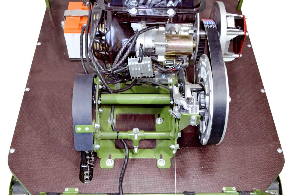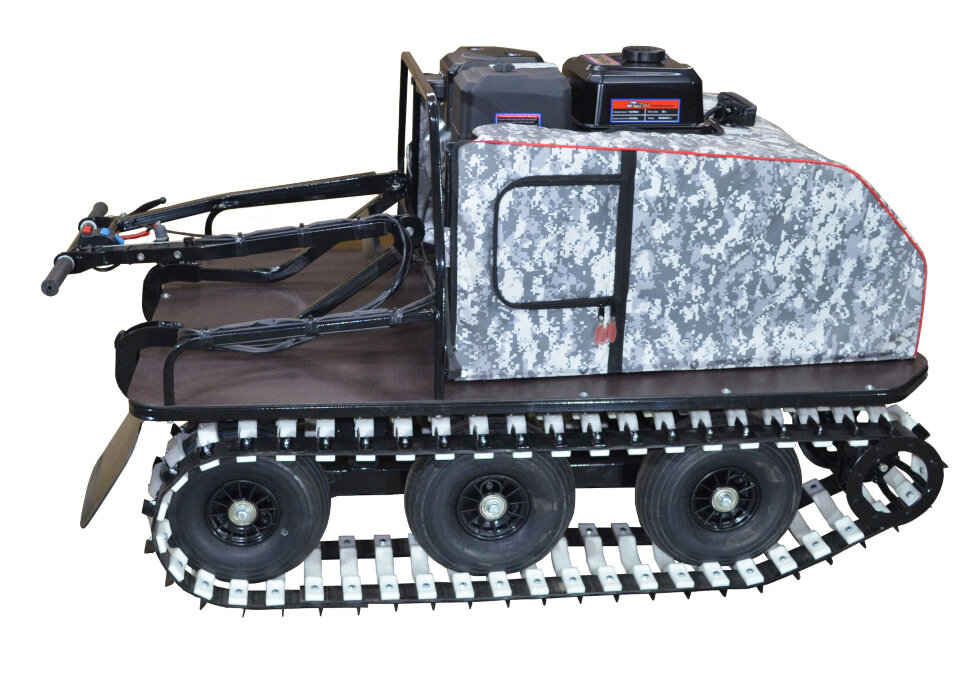 Надежная техника для эксплуатации в суровых климатических условиях. Идеальный выбор для патрулирования и транспортировки грузов в зимний период. Четырехтактный мотор мощностью 15 л.с. развивает скорость до 40 км/ч и обеспечивает экономичный расход топлива. Мотобуксировщик оснащен прочной и надежной рамой, которая обеспечивает отличную устойчивость и долговечность конструкции. Ширина 210 мм и прочные резино-металлические вставки обеспечивают отличное сцепление и износостойкость на различных покрытиях. Эффективная тормозная система обеспечивает безопасность и надежность в экстремальных условиях эксплуатации. Качественная катковая подвеска сглаживает ход и обеспечивает устойчивость на неровной поверхности.