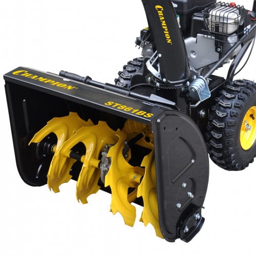 ЧЕМПИОН ST861BS — самоходный бензиновый снегоуборщик с мощным двигателем 9 л.с. и увеличенным шнеком для уборки снега различной плотности. Благодаря металлической раме и подогреву ручек, этот снегоуборщик станет отличным помощником в суровые зимы.