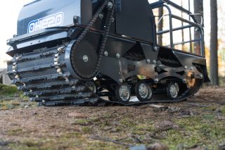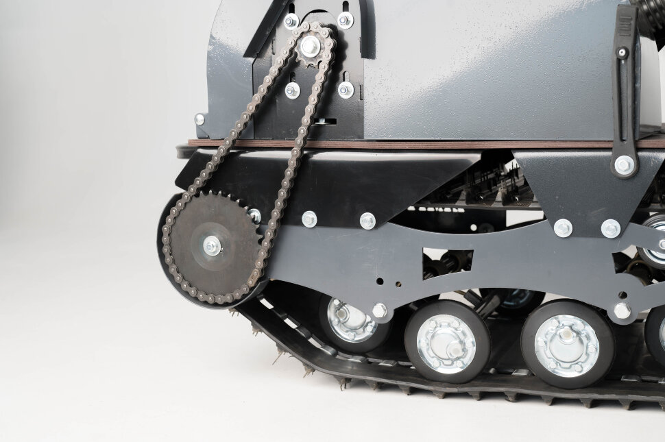 Гусеница шириной 500 мм в сочетании с катковой подвеской даёт стабильное сцепление на снегу и льду и позволяет уверенно перемещаться по участкам с малым снежным покровом.