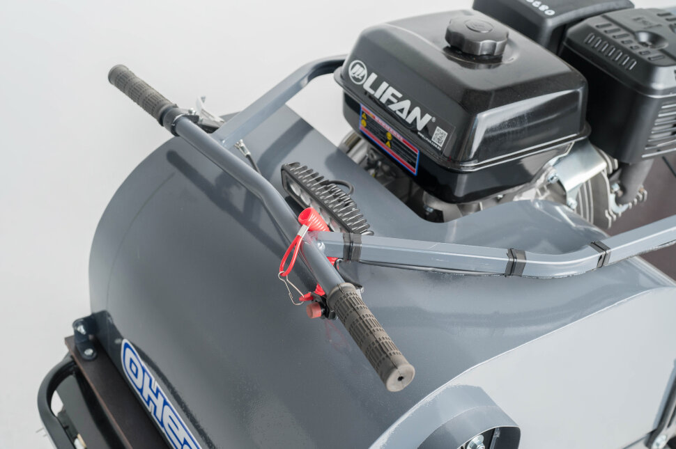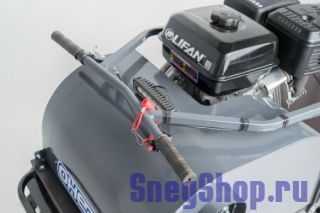 Обрезиненные катки с сальниками и самоочищающаяся ведомая звезда уменьшают налипание снега, а регулируемая по высоте рукоятка повышает комфорт управления.