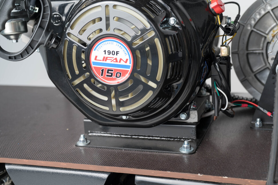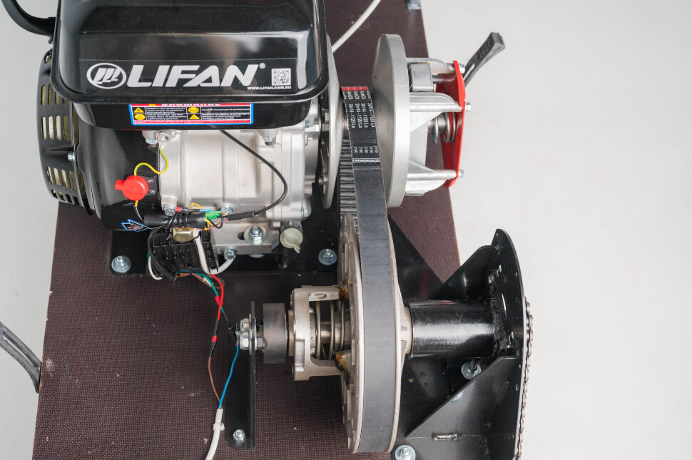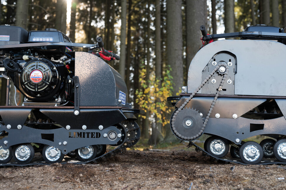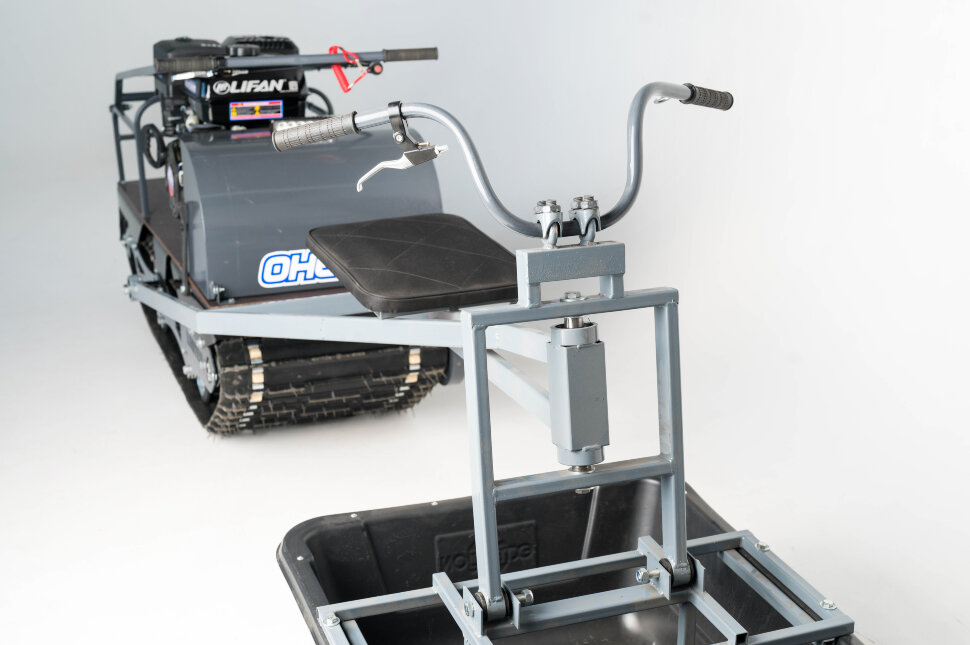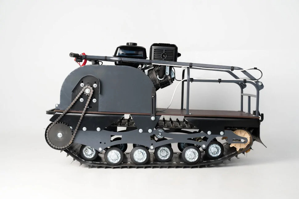 Всесезонная техника для снега, льда, песка и грунта: уверенная тяга на замёрзших водоёмах и в глубоких сугробах. Плавная передача мощности и устойчивый разгон при изменении нагрузки и скорости. Мощность 15 л.с. для уверенной буксировки и динамики на целине и насте. Надёжный зацеп на снегу и льду, уверенный ход по укатанным и рыхлым покрытиям. Вариативная компоновка: катки, склизы (в т.ч. подпружиненные) и пневмоколёса под сезон и рельеф. Обрезиненные катки с сальниками и самоочищающаяся ведомая звезда против налипания снега и льда. Настройка по высоте под рост и стиль управления — контроль на узких и сложных участках.