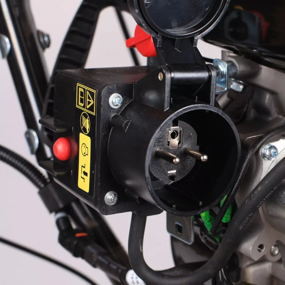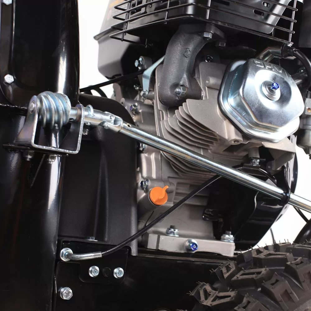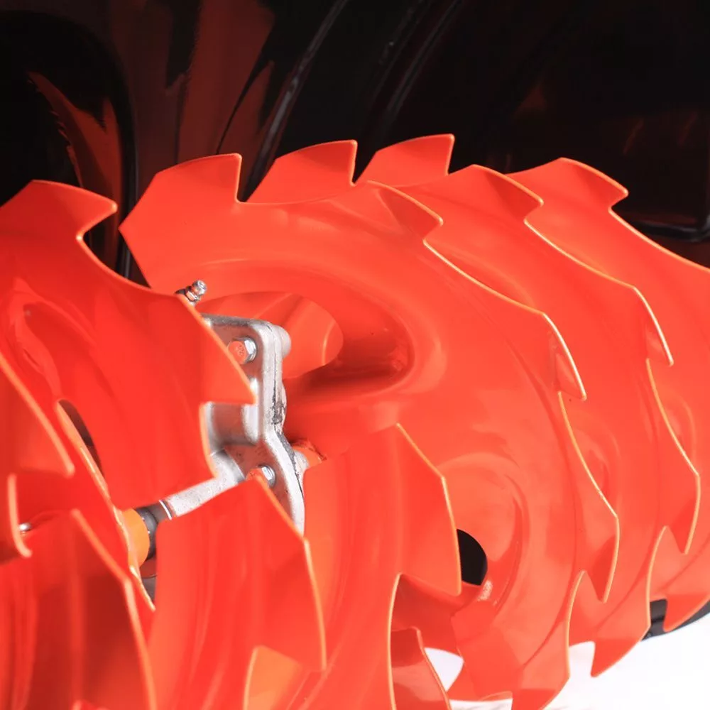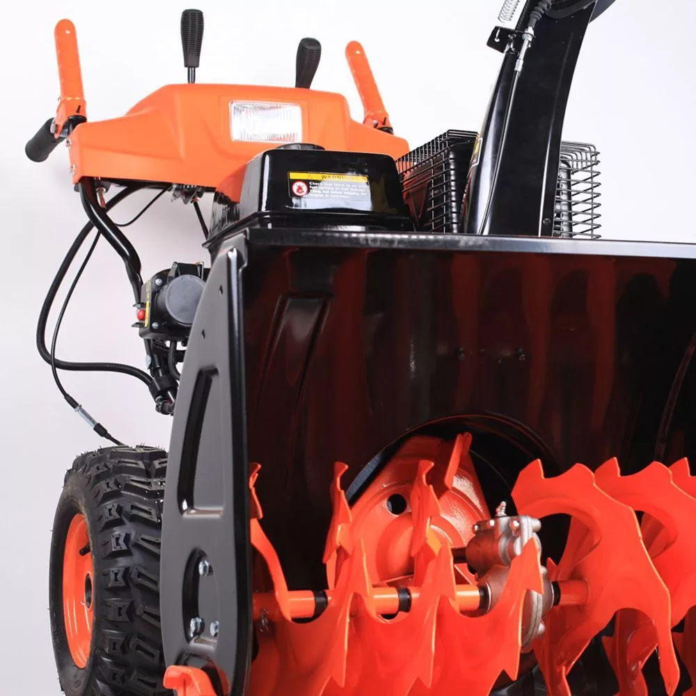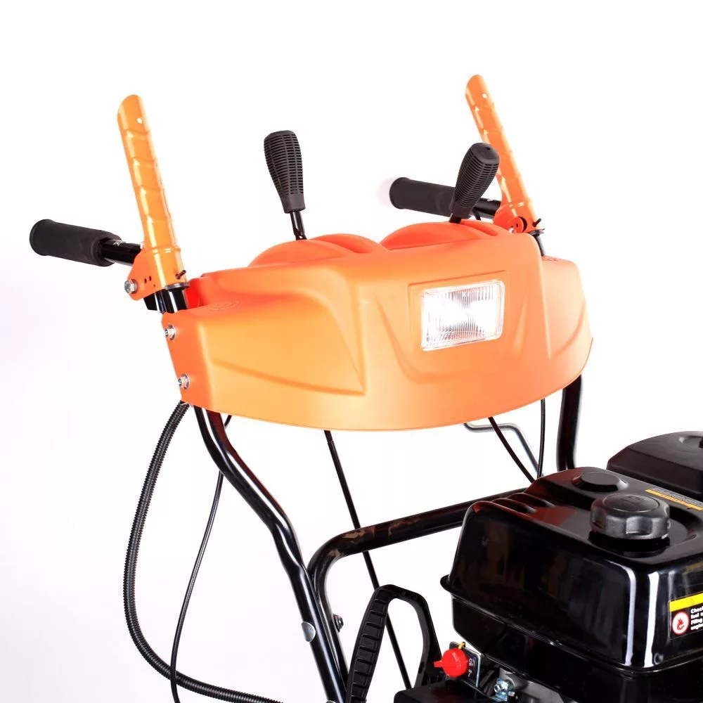 Устройство оснащено электростартером и фарой для работы в темное время суток, а также функцией обогрева ручек для комфортного управления в холодные дни. Кроме того, в конструкции снегоуборщика используются подшипники вместо втулок, что значительно увеличивает срок службы машины.