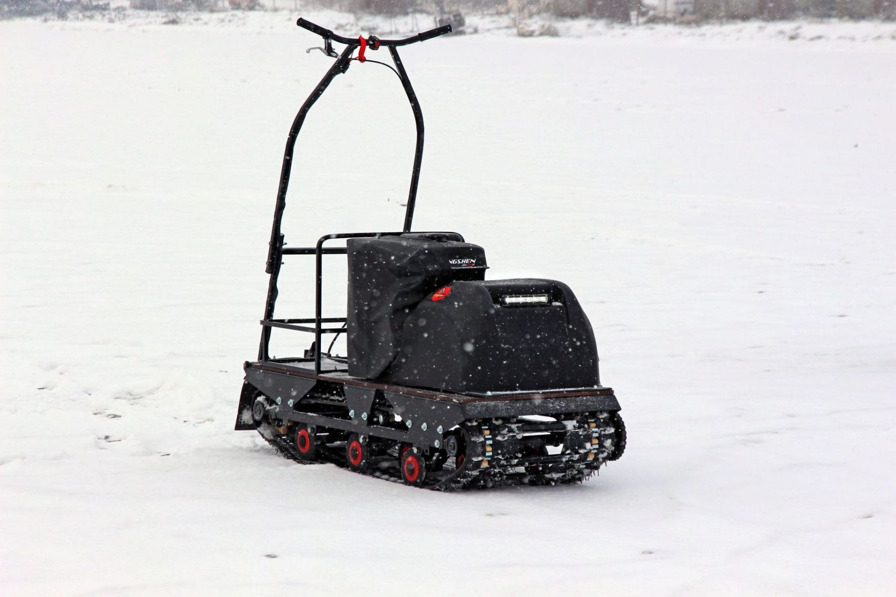 Надежная техника для зимних маршрутов и сложных условий: идеально для перевозки грузов и пассажиров по снежным и влажным территориям. 4-тактный двигатель мощностью 13 л.с. обеспечивает отличную тягу и позволяет разгоняться до 45 км/ч. Точная геометрия и усиленная конструкция рамы обеспечивают высокую устойчивость и долговечность. Гусеница шириной 550 мм и катковая подвеска для улучшенной проходимости и комфорта на неровных участках. Компактные размеры и масса ~95 кг обеспечивают отличную манёвренность даже на сложных участках.