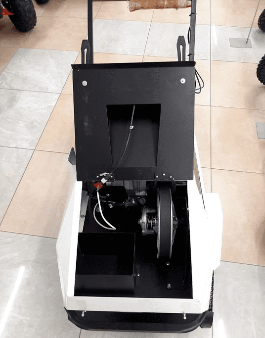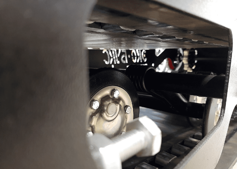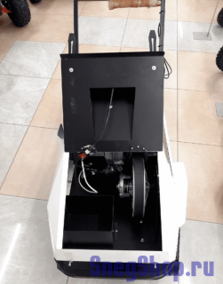 Второе поколение с классической компоновкой и современным дизайном: прочная рама, широкая гусеница и вариатор для уверенного хода круглый год. Рама выштампована из цельного металлического листа — жёсткость и ресурс выше, чем у сварных конструкций. Катковая подвеска и регулируемый угол атаки улучшают зацеп и проходимость на рыхлых и укатанных покрытиях. 15-сильный мотор с передним расположением и вариаторная трансмиссия обеспечивают тягу и плавность хода. Дизайн со смотровым стеклом, удобный доступ к узлам и аккуратная укладка коммуникаций. Полноценный багажник сзади и «бардачок» под капотом — для инструмента и мелочей. Светодиодная фара для видимости и усиленная цепь для стабильной передачи момента.