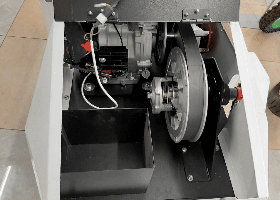 Двигатель мощностью 15 л.с. установлен спереди — развесовка улучшает зацеп и снижает «козление» на старте. Вариаторная трансмиссия помогает плавно трогаться,